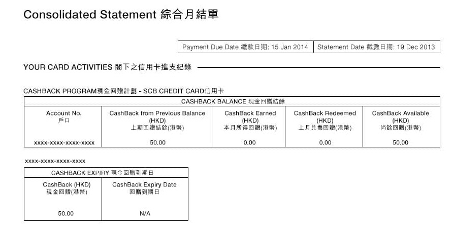 You can convert CashBack to cash. (Cash redemption is only applicable to designated credit card account, CashBack cannot be combined during the redemption. The minimum threshold for Cash redemption is HKD50 per account with designated multiplier).