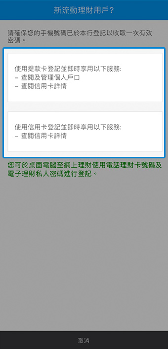 在「個人銀行客戶」或「信用卡客戶」下按「登記」。