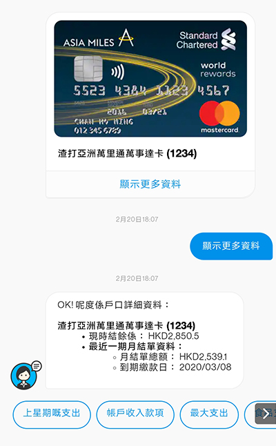 - 查詢戶口資料(按揭戶口及投資戶口除外)例如,存款期、定期到期日、信用卡還款資料、獎賞等等。