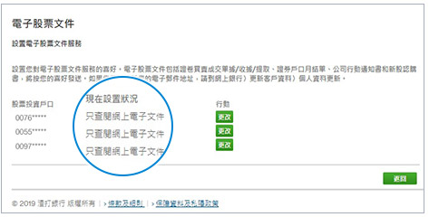 - 部分公司行動通知書僅提供紙張版本,尚未能提供電子版本。因此,即使閣下已選用電子文件服務,本行仍會把此等公司行動通知書傳送至閣下的郵寄地址。有關詳情,請參閱常見問題。